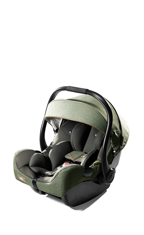 ・ Mit Basis Joie Signature i-Base Encore lässt sie sich in einen um 90° drehbaren Autositz verwandeln ・ Kopfstütze und Gurte lassen sich gleichzeitig verstellen ・ Mehrfach verstellbarer Tragegriff mit Griff aus Kunstleder