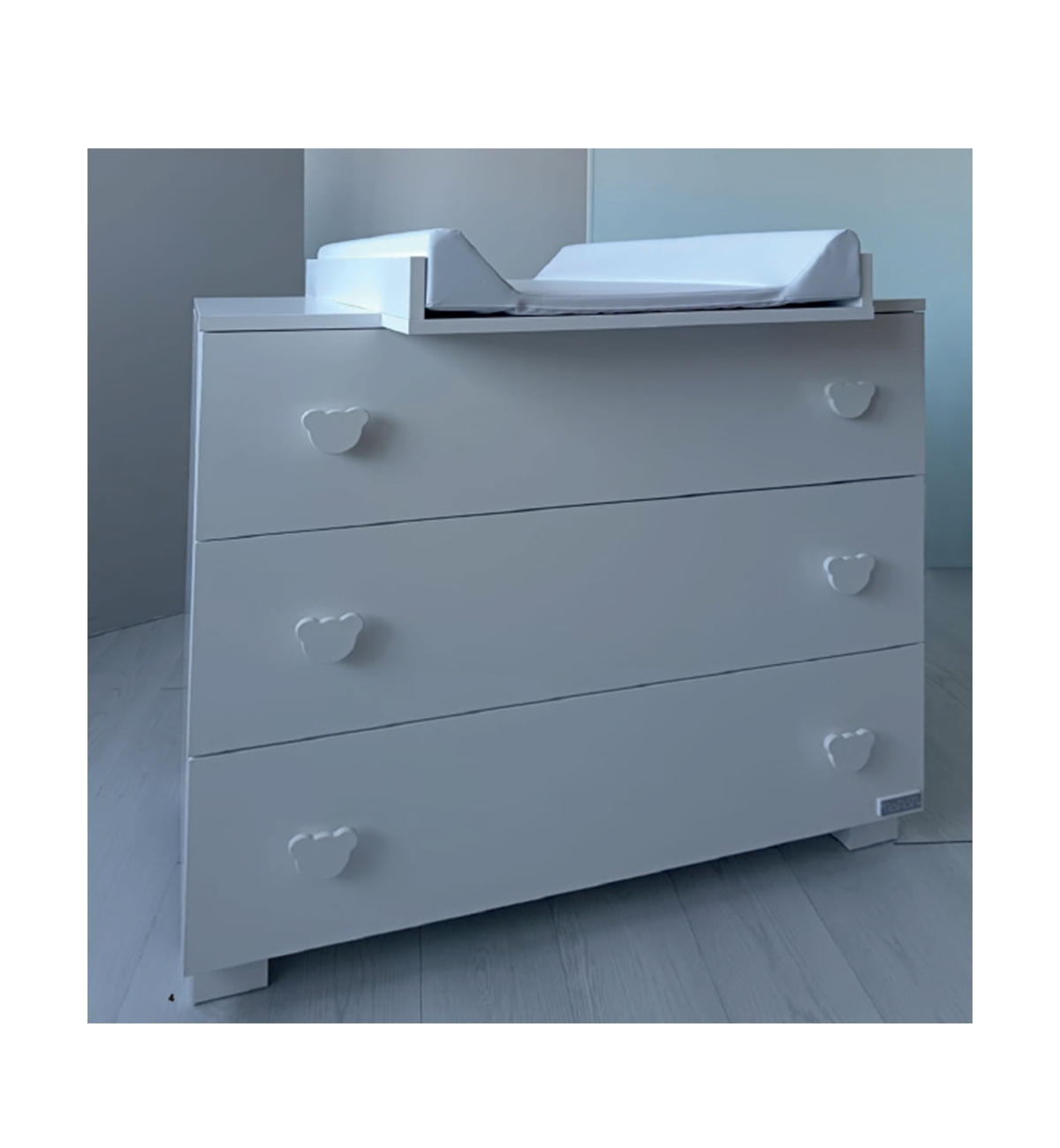 Komplette ABS-Oberfläche an den Kanten. Kann nur für Kommoden aus der Produktion Nanan verwendet werden. Das Produktoberteil ist für die ineinandergreifende Kommode geeignet und kann mit Hilfe von Metallanschlägen in jeder beliebigen Position an der Kommode befestigt werden. Der PVC-Wickeltisch, der in die Verlängerung gesteckt wird, muss gemäß den Anweisungen mit den 4 mitgelieferten doppelseitig klebenden Klettverschlüssen am Produkt befestigt werden.
