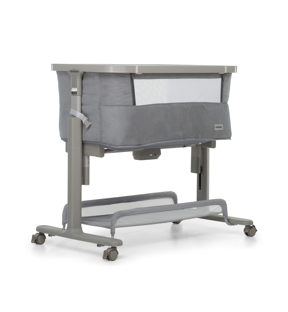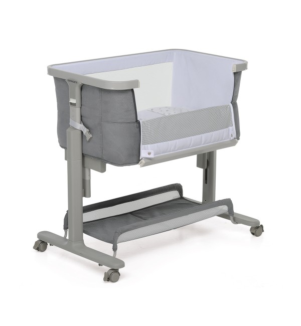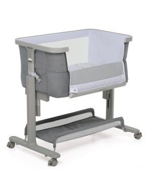 The Dream&Swing co-sleeping crib by Foppapedretti has an adjustable rocking function and music with the supplied remote control. It can be used as a bedside crib and has anti-reflux mode. You can choose between 8 musical melodies, the aluminum structure is light and is adjustable to 10 heights. It also includes a mattress, storage surface and mesh fabric to ensure excellent ventilation. It is possible to choose to mount four rubberized and swivel wheels or four self-leveling, non-slip feet. Can be used from birth up to 9 kg in weight.
