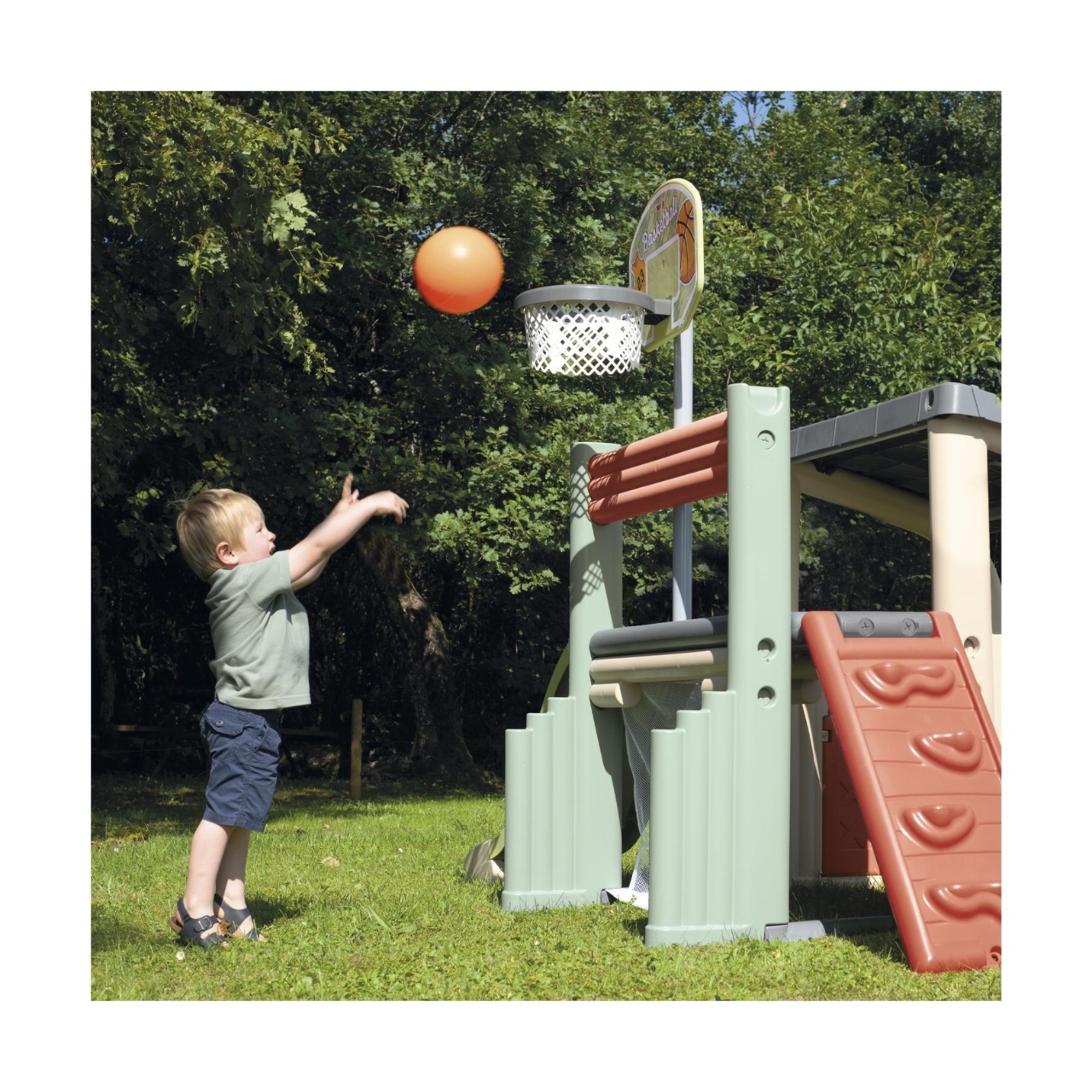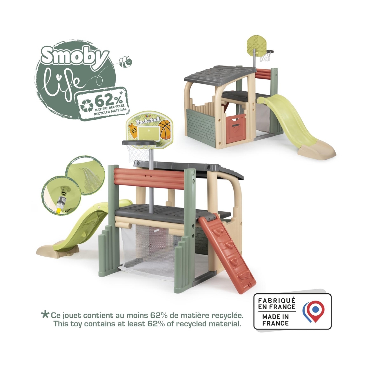 Il Fun Center Smoby Life, realizzato con almeno il 60% di plastica riciclata, offre numerose opzioni di gioco e sport.