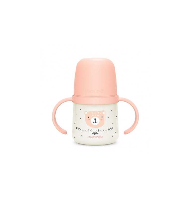 El biberón Suavinex Wild & Free de 150 ml con asas está especialmente diseñado para ayudar al niño en la transición del biberón al vaso. Equipado con una boquilla de silicona granulada ultrasuave con bordes redondeados, ofrece la misma textura agradable que la tetina SX Pro™ para una comodidad óptima