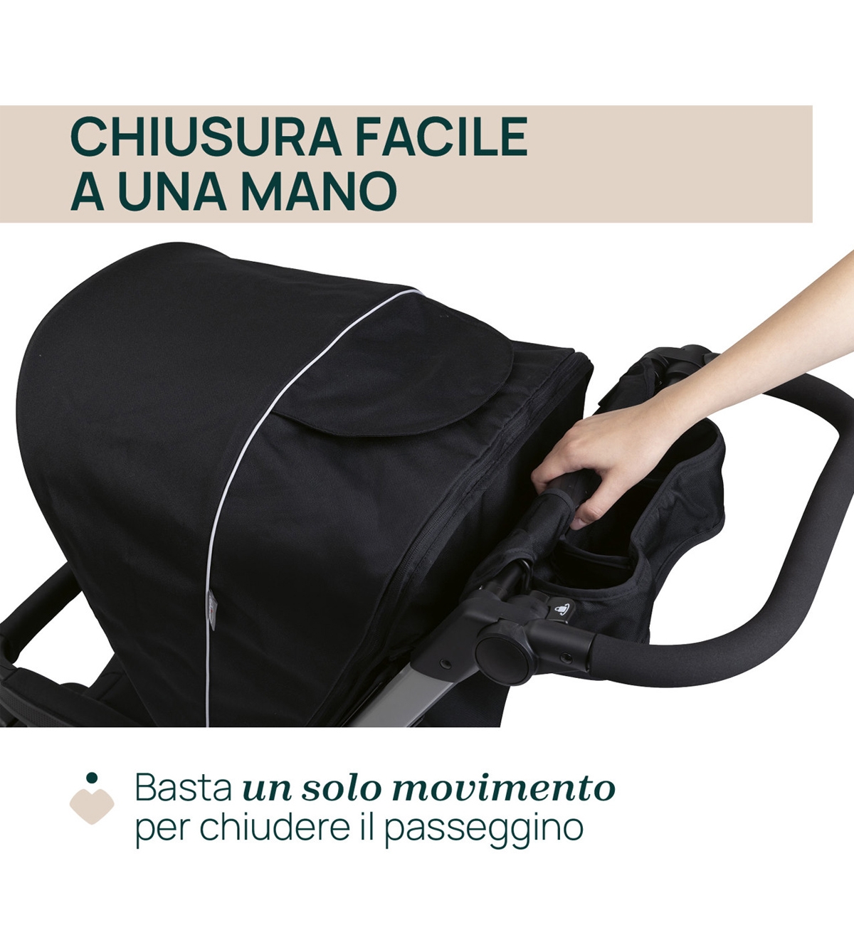 💨 Fermeture rapide d'une seule main : système de pliage rapide et facile qui maintient la poussette en position verticale lorsqu'elle est fermée.