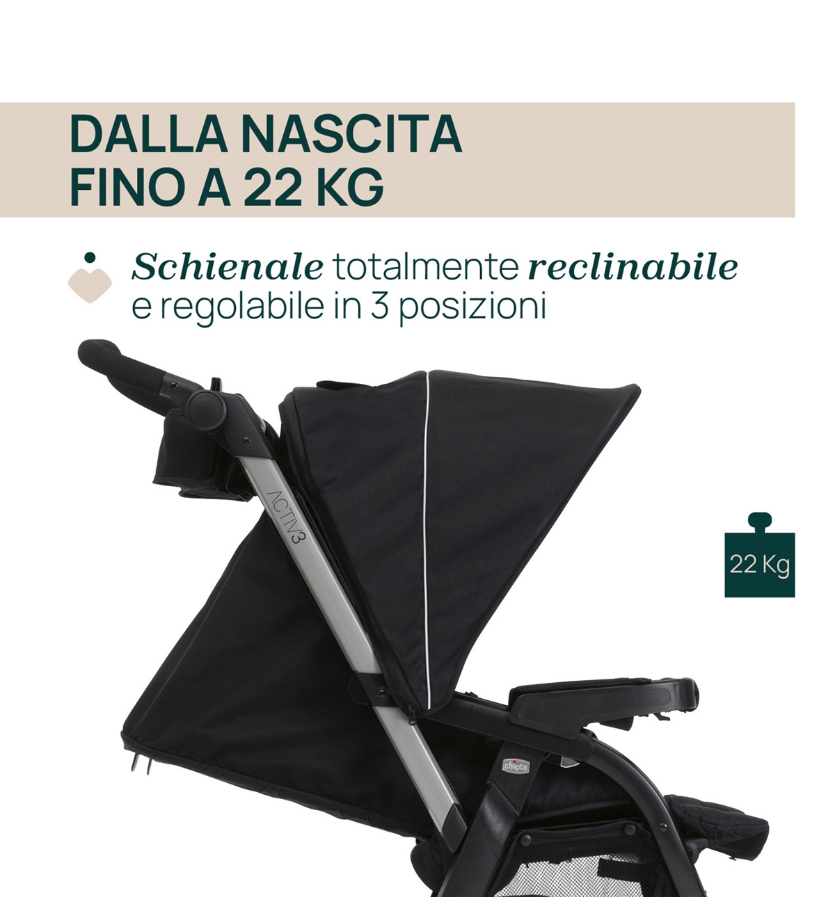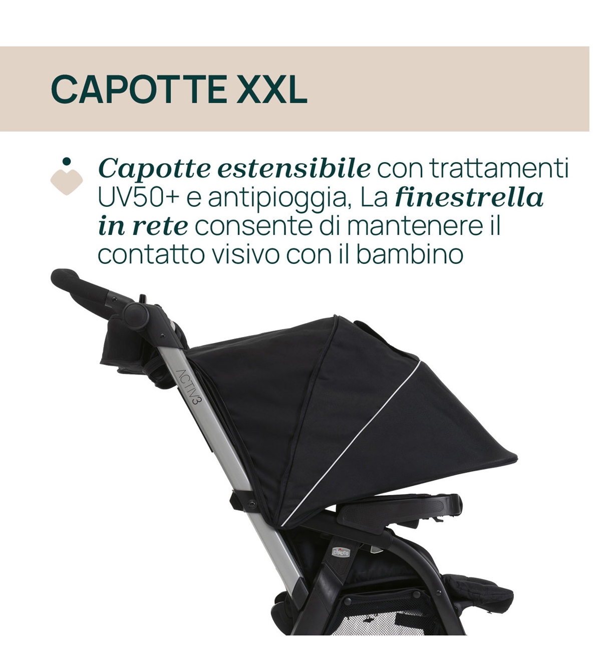 Avec son design sportif et robuste, l'Activ3 Chicco est l'allié idéal pour les promenades en ville, les week-ends en dehors de la ville et tous les itinéraires à aborder en toute confiance et confort