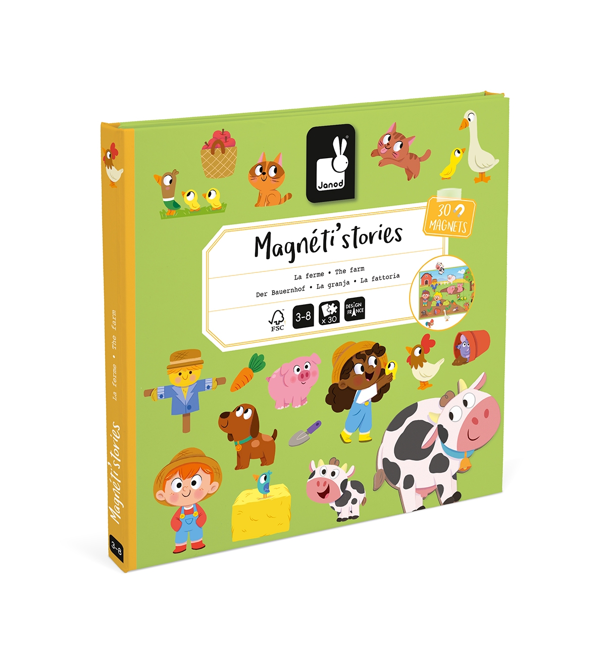 È composto da uno sfondo illustrato e 30 calamite. Le calamite sono state progettate per sviluppare le abilità fino-motorie dei più piccoli. Il bambino potrà afferrarle, posizionarle sullo sfondo magnetico e inventare storie sempre nuove con la sua immaginazione. Di giorno o di notte, su una nuvola o in mezzo al prato, viaggerà nell'universo tenero e colorato dei piccoli unicorni. Posizionando lo sfondo in verticale, il bambino potrà raccontare le sue avventure a tutta la famiglia. Pratico e pieghevole, lo sfondo magnetico può essere infilato nello zaino del bambino per seguirlo ovunque vada. Questo gioco magnetico sul tema degli unicorni fa parte della collezione Magneti'stories, un vero e proprio invito all'immaginazione e al sogno ad occhi aperti. Gioco magnetico fabbricato in cartone certificato FSC™ e materiali controllati. Dimensioni: 18 x 1,5 x 18 cm.