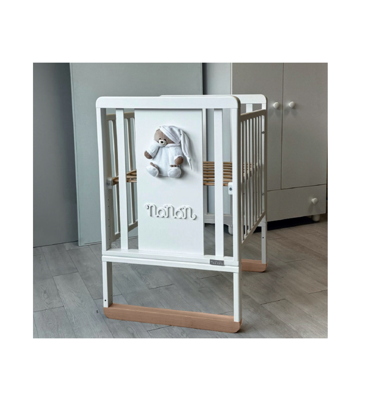 Testata decorata con scritta "Nanan" e decoro "Tato" applicati esternamente.