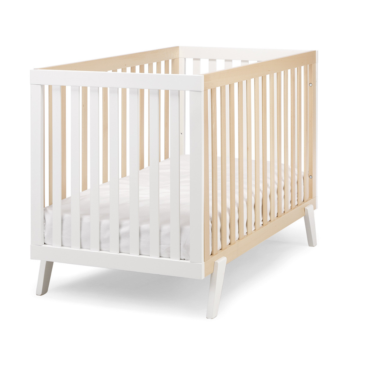 Il lettino della collezione America di Erbesi è interamente realizzato in legno massello di faggio, compatibile con materassi di misura 120 x 60 x 10 e presenta un design Nordico ed essenziale. Dispone di due sponde fisse, ha ben tre posizioni per la rete e acquistando separatamente la sponda "toddler" si possono agevolare i movimenti dei piccoli non appena sono in grado di muoversi autonomamente. La struttura del lettino misura 125 x 65 x 91h cm.