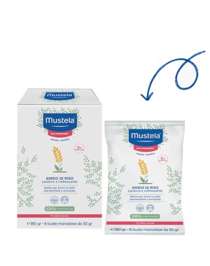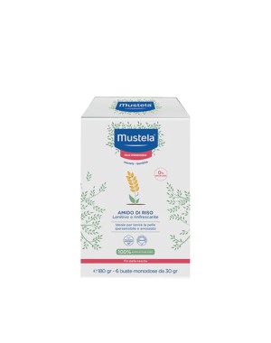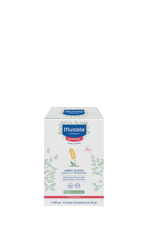 Una piacevole sensazione di morbidezza e freschezza per la pelle delicata di neonati e bambini: perfetto per un piacevole bagnetto; l'amido di riso deterge la pelle, lenisce gli arrossamenti e allevia la sensazione di prurito. Specificamente formulato per la pelle ipersensibile e reattiva fin dalla nascita, l'amido di riso lenitivo e rinfrescante deterge la pelle, lenisce gli arrossamenti e allevia la sensazione di prurito cutaneo grazie ad un'associazione di principi attivi innovativi di origine naturale. Grazie alla sua azione calmante e lenitiva, protegge la barriera cutanea, riducendo gli arrossamenti, la sensazione di pelle che tira e di prurito, tipiche della pelle ipersensibile. Ideale anche in caso di sudamina e arrossamenti della zona pannolino. La confezione contiene 4 bustine da 30gr.