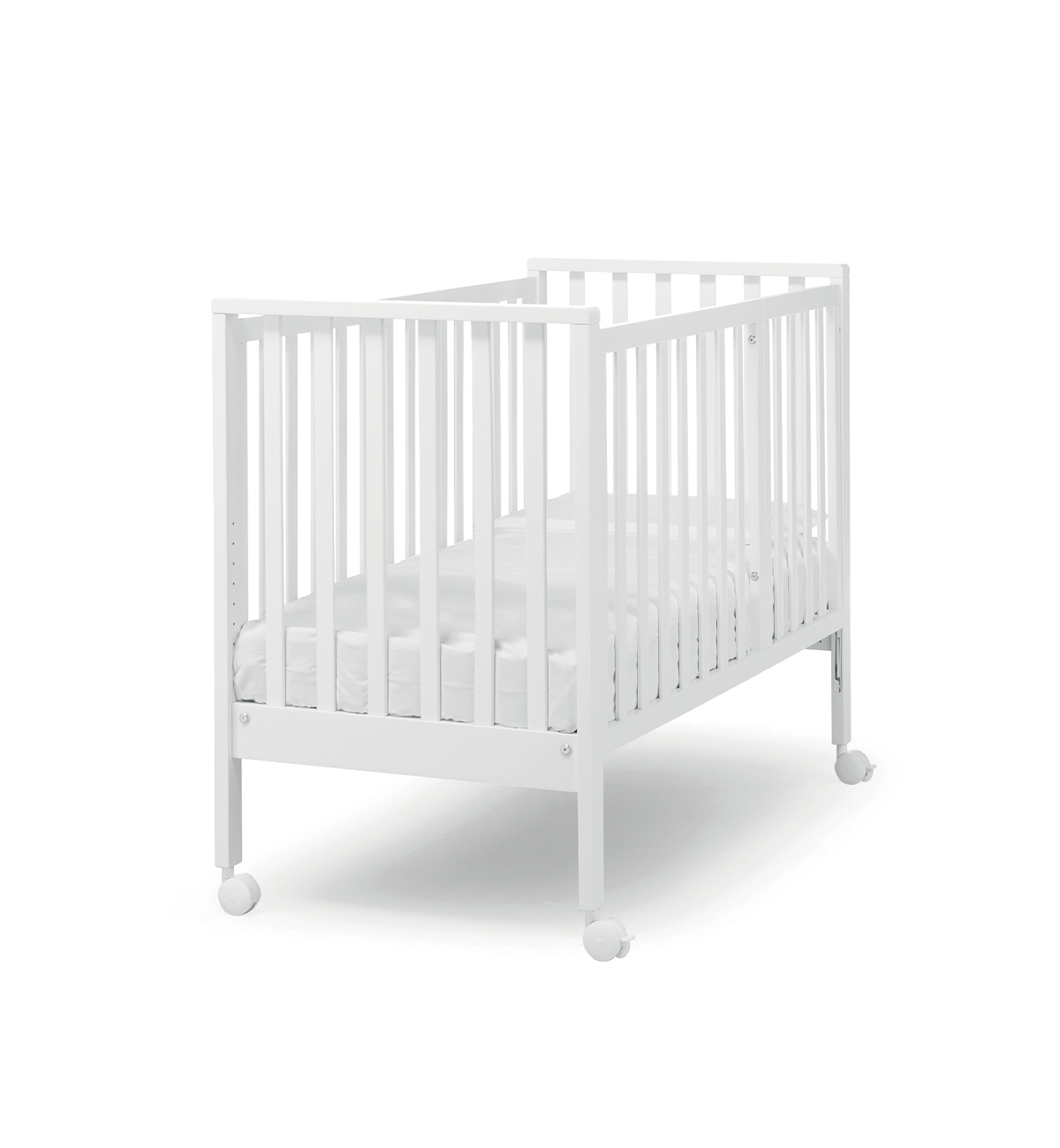 La culla/lettino della collezione Evolution di Erbesi è realizzato in legno massello di faggio conforme alla Normativa Europea di Sicurezza EN 1130:2019 / AC:2020. È dotato di 4 ruote piroettanti con freno, rete posizionabile su 9 altezze, barriera di sicurezza per il co-sleeping e una sponda mobile. Comprende un materasso con cover in Aloe sfoderabile di misura 76 x 60 x 8 cm adattabile al formato culla.