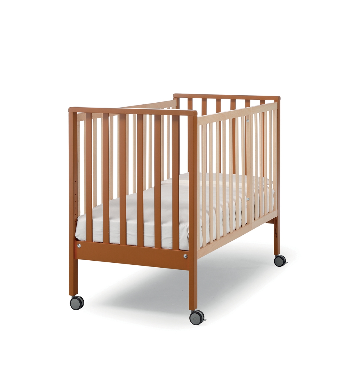 La culla/lettino della collezione Evolution di Erbesi è realizzato in legno massello di faggio conforme alla Normativa Europea di Sicurezza EN 1130:2019 / AC:2020. È dotato di 4 ruote piroettanti con freno, rete posizionabile su 9 altezze, barriera di sicurezza per il co-sleeping e una sponda mobile. Comprende un materasso con cover in Aloe sfoderabile di misura 76 x 60 x 8 cm adattabile al formato culla.