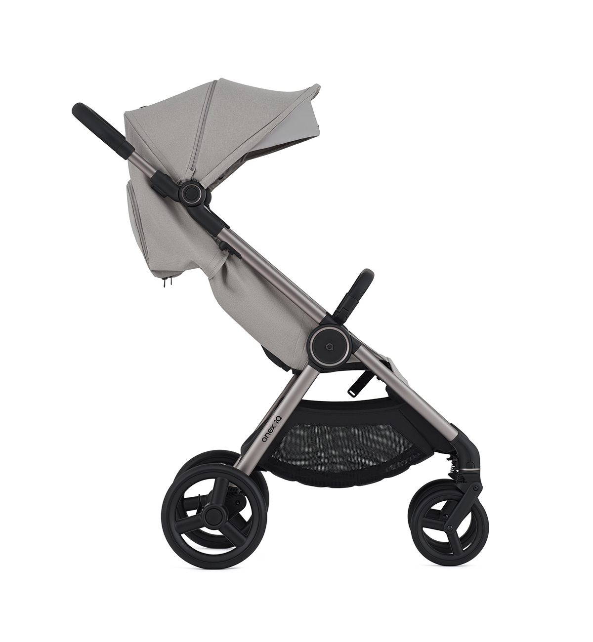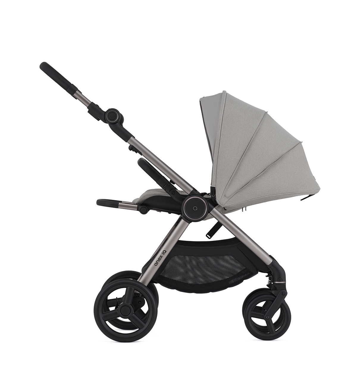 Il nuovo IQ di Anex è navicella, passeggino e buggy tutto in uno! Con anex IQ avrai navicella, unità seduta e passeggino in un unico sistema. Combina e abbina le diverse parti in base alle tue esigenze. La sua compattezza ti permette di adattarlo senza problemi in auto, aereo e persino in un armadio. Puoi piegare il telaio insieme all'unità seduta in entrambe le direzioni e persino piegare la navicella in una  dimensione per il bagaglio a mano.