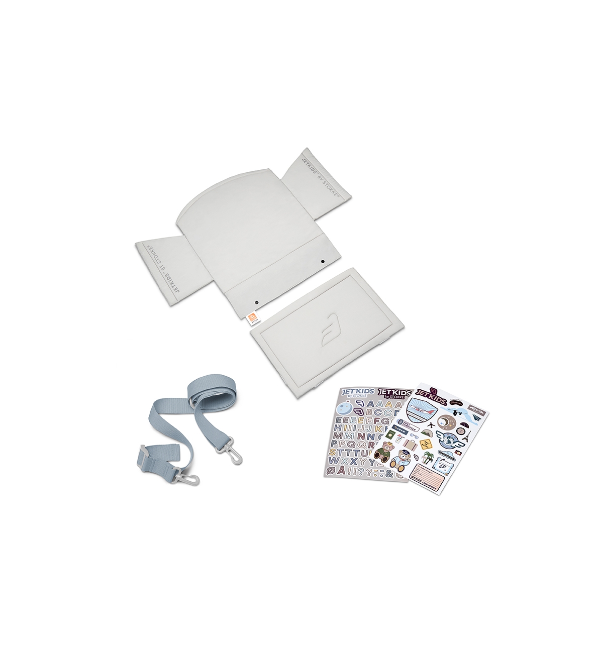 JETKIDS™ Bed box e stata pensata da STOKKE® per trasformare con 5 semplici mosse il sedile di un aereo in un confortevole e pratico lettino per il tuo bebe e per farlo divertire nella funzione di valigia cavalcabile e trainabile.
