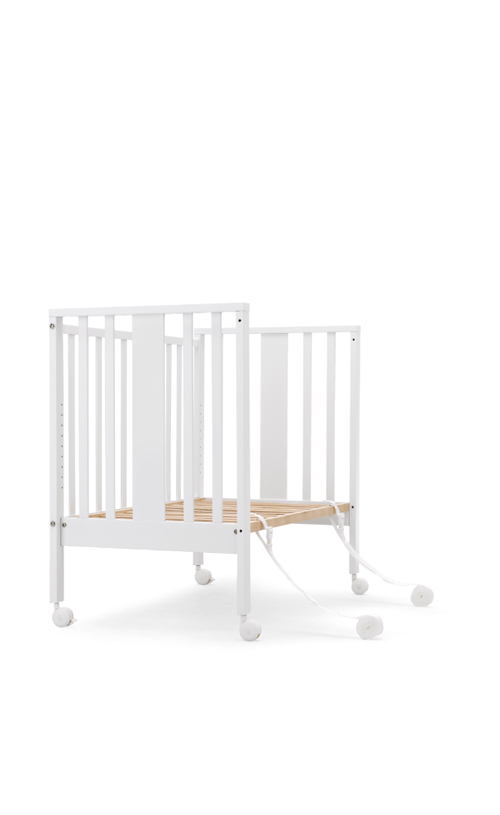 Lettino Mini realizzato in legno di massello di faggio adatto per il co-sleep. Il lettino Mini e dotato di due cinghie di sicurezza per l'ancoraggio al letto dell'adulto e di 4 ruote piroettanti di cui 2 con freno. Regolabile in 9 diverse posizioni in modo da potersi adattare a tutti i tipi di letto da adulto.