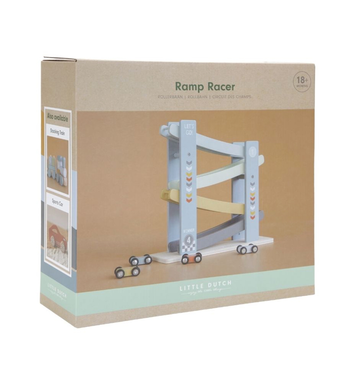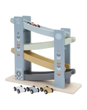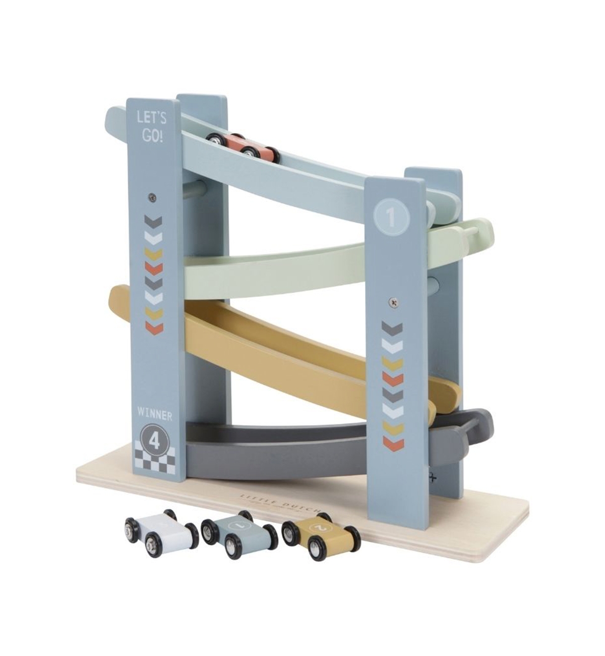 1, 2, 3 e via! Con questa allegra rampa da corsa in legno con 4 macchinine, il tuo piccolo si divertirà un mondo. Posiziona le macchinine una alla volta sulla pista da corsa, lasciale andare e scenderanno a tutta velocità. I ​​bambini adorano questo! Dimensioni: 10 x 28 x 28 cm. Età: 18 mesi +.