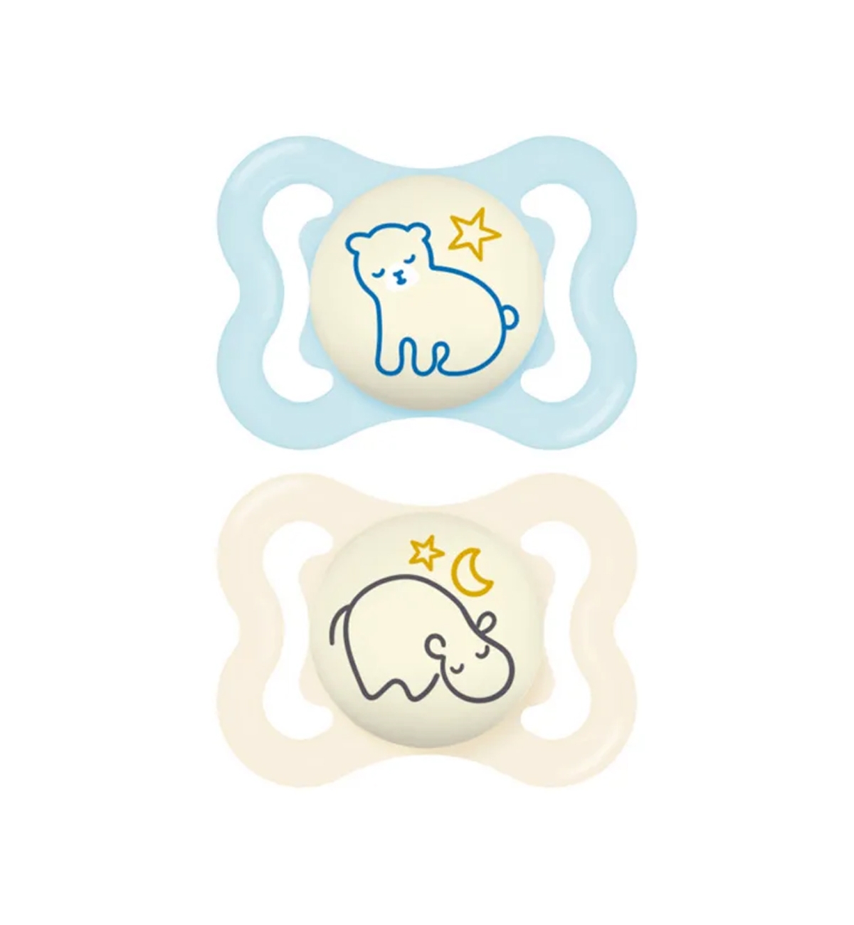 • Ciuccio che si illumina al buio – facile da trovare grazie al bottone luminescente