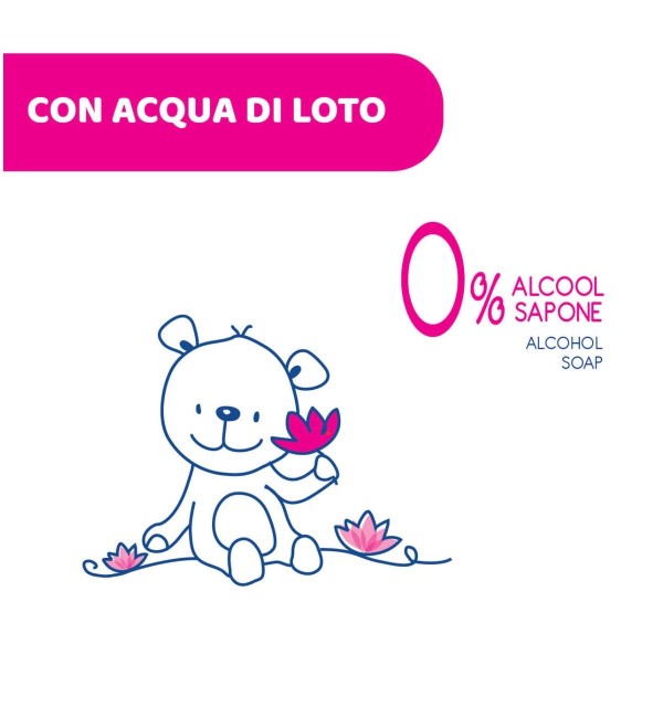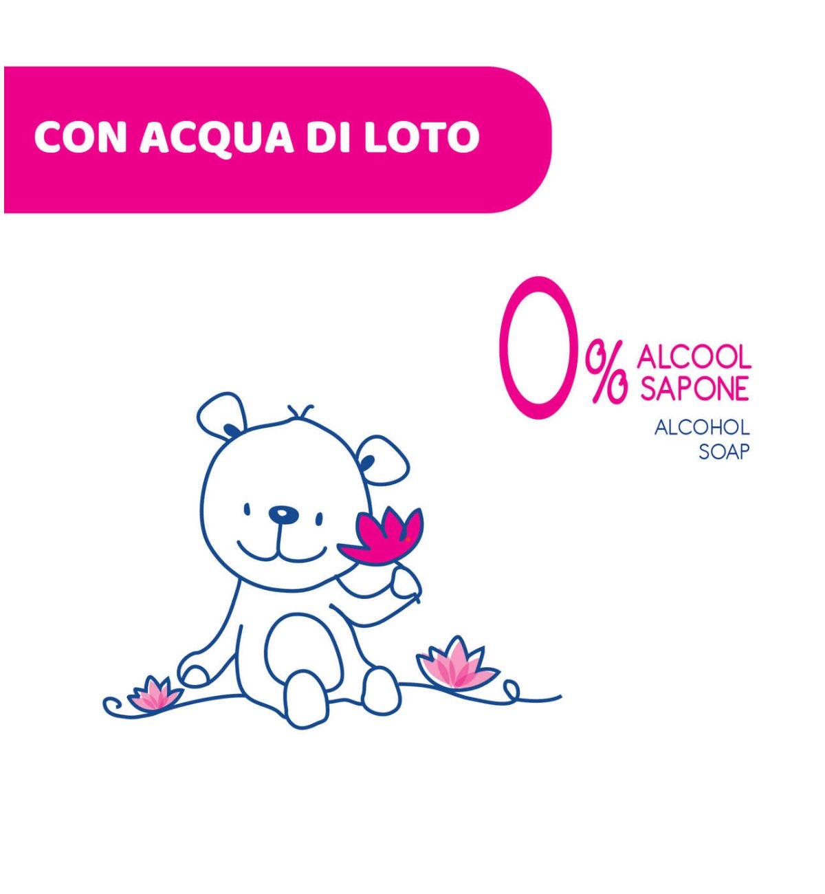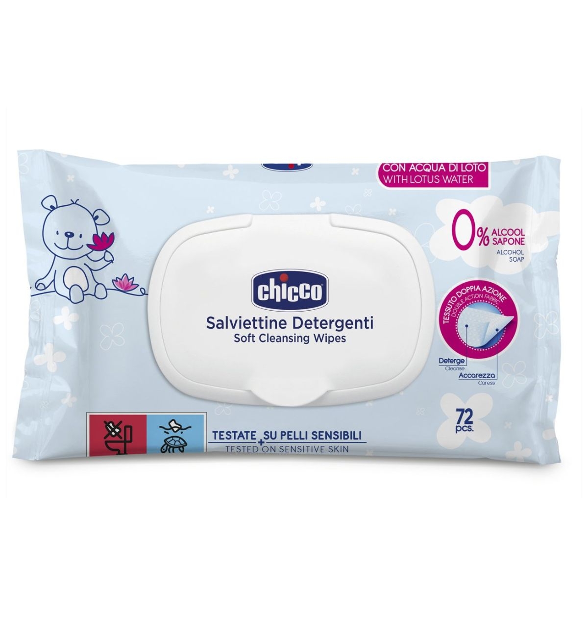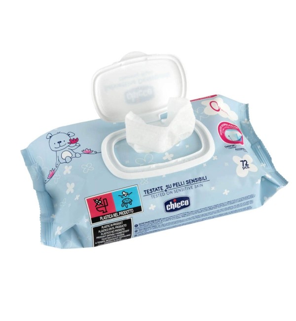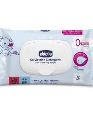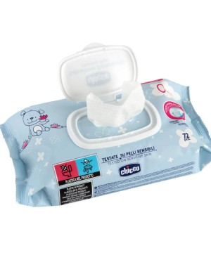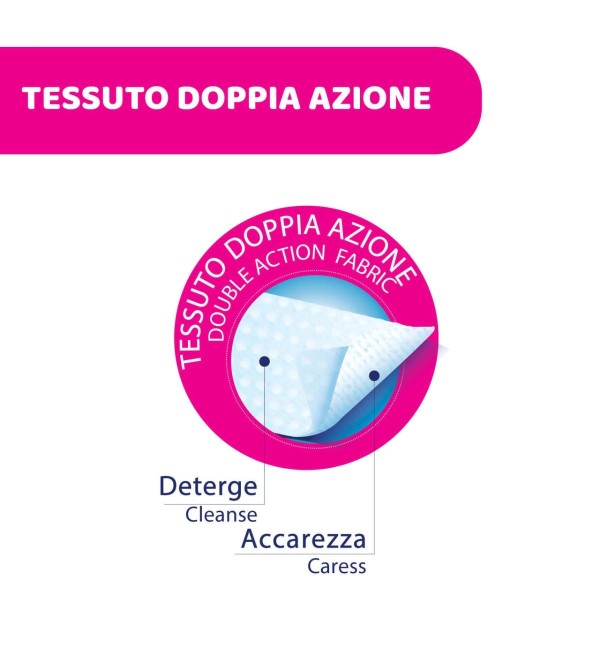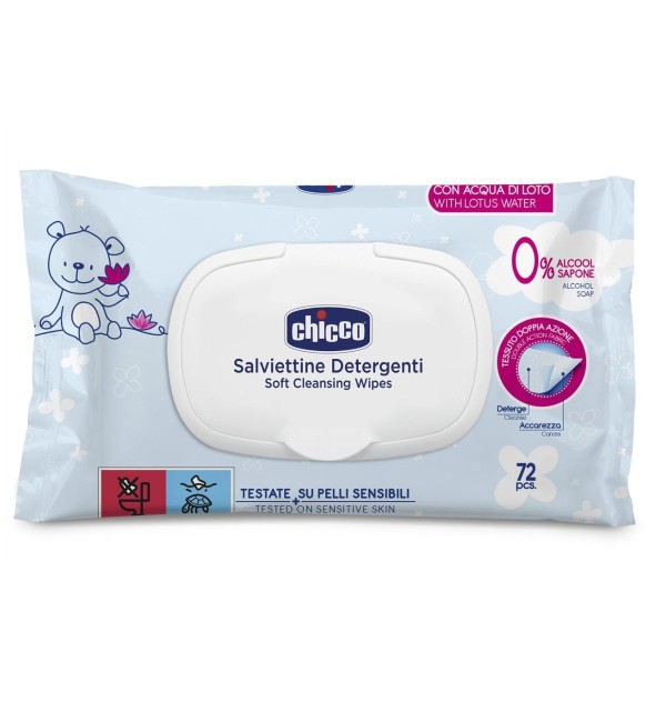 Salviettine detergenti Chicco per l'igiene quotidiana della pelle del bambino, grazie al tessuto innovativo a doppia azione con cellulosa.